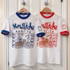 Screenprinted with plastisol ink for durability and machine wash-ability. Available in both blue and red colorways. Unisex sizing.